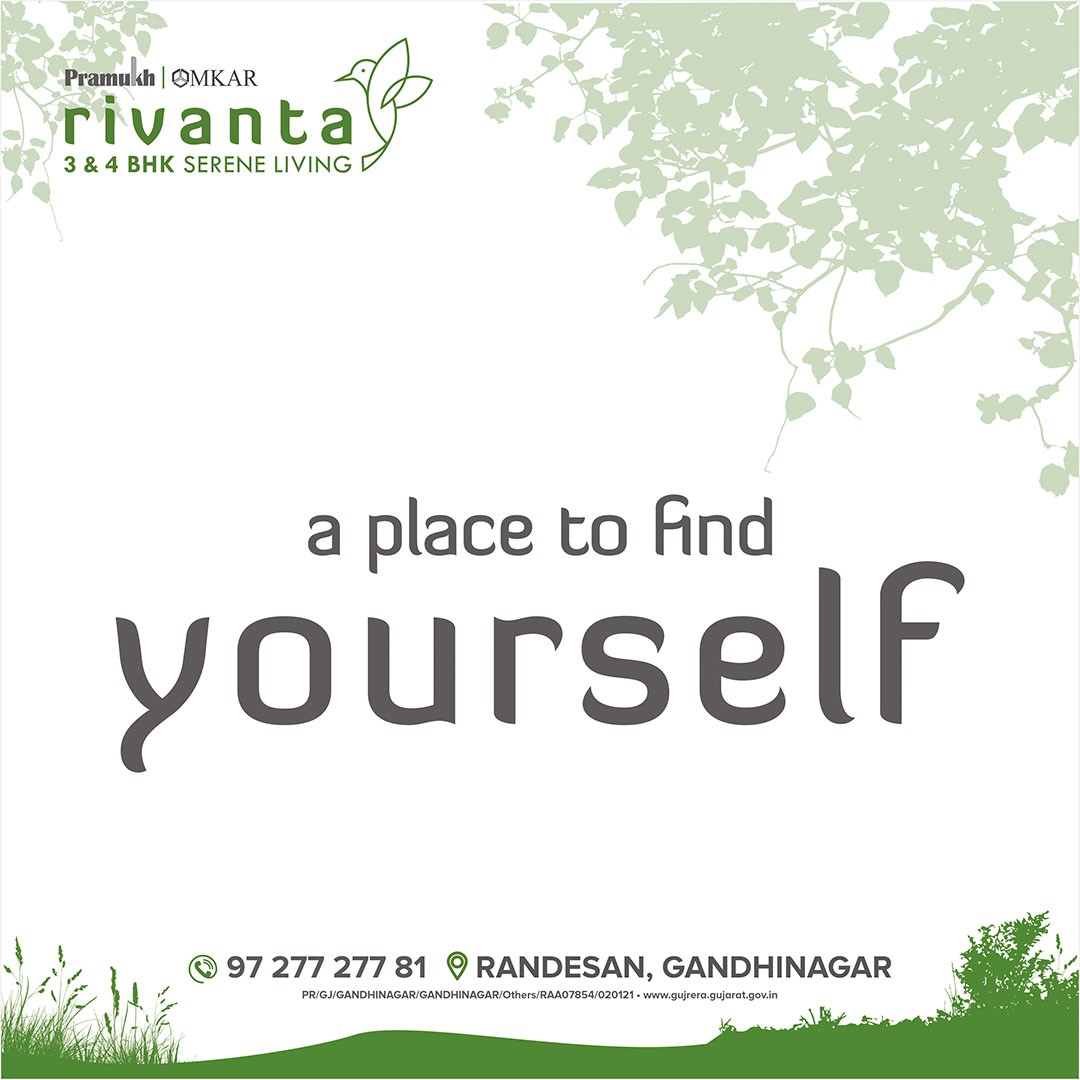 Ever find yourself engulfed in the busy city life and just want to get away What if the getaway was permanent and you could have the city life too Get the best of both worlds at RIVANTA 3 4 BHK SERENE LIVING By Pramukh and Omkar Near Antriksh Dholeshwar Mahadev Road Randesan Gandhinagar BOOK NOW 97 277 277 81 info rivanta in