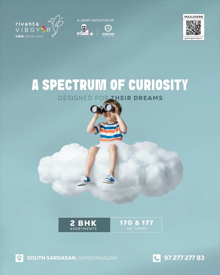 Every kid dreams differently And hence every corner at Rivanta Vibgyor is designed with a space for their curiosity Book your luxurious 2 BHK apartment now South Sargasan Gandhinagar 91 97 277 277 83