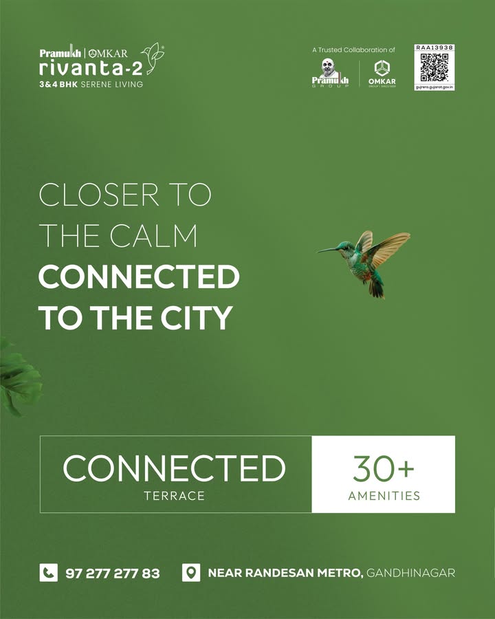 Live just 5 minutes away from Dholeshwar Mahadev Temple feel a sense of calm and connection while staying seamlessly linked to everyday city life Rivanta 2 luxurious 3 4 BHK apartments Book now Nr Randesan Metro Gandhinagar 91 97 277 277 83