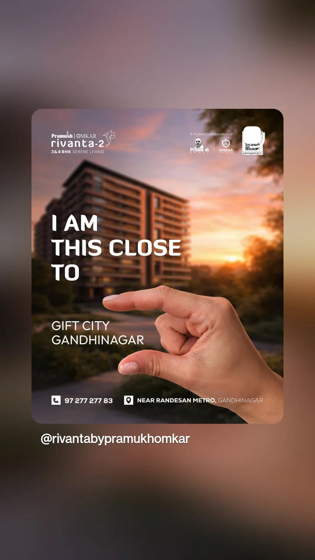 Rivanta 2 keeps you at the centre of everyday convenience seamless connectivity and calm living Rivanta 2 luxurious 3 4 BHK apartments Book now Nr Randesan Metro Gandhinagar 91 97 277 277 83