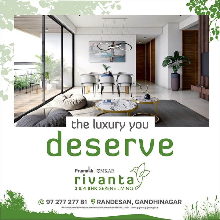 Feel the wind in your face and the peace in your heart. RIVANTA - 3 & 4 BHK SERENE LIVING By Pramukh and Omkar ðŸ“Near Antriksh, Dholeshwar..