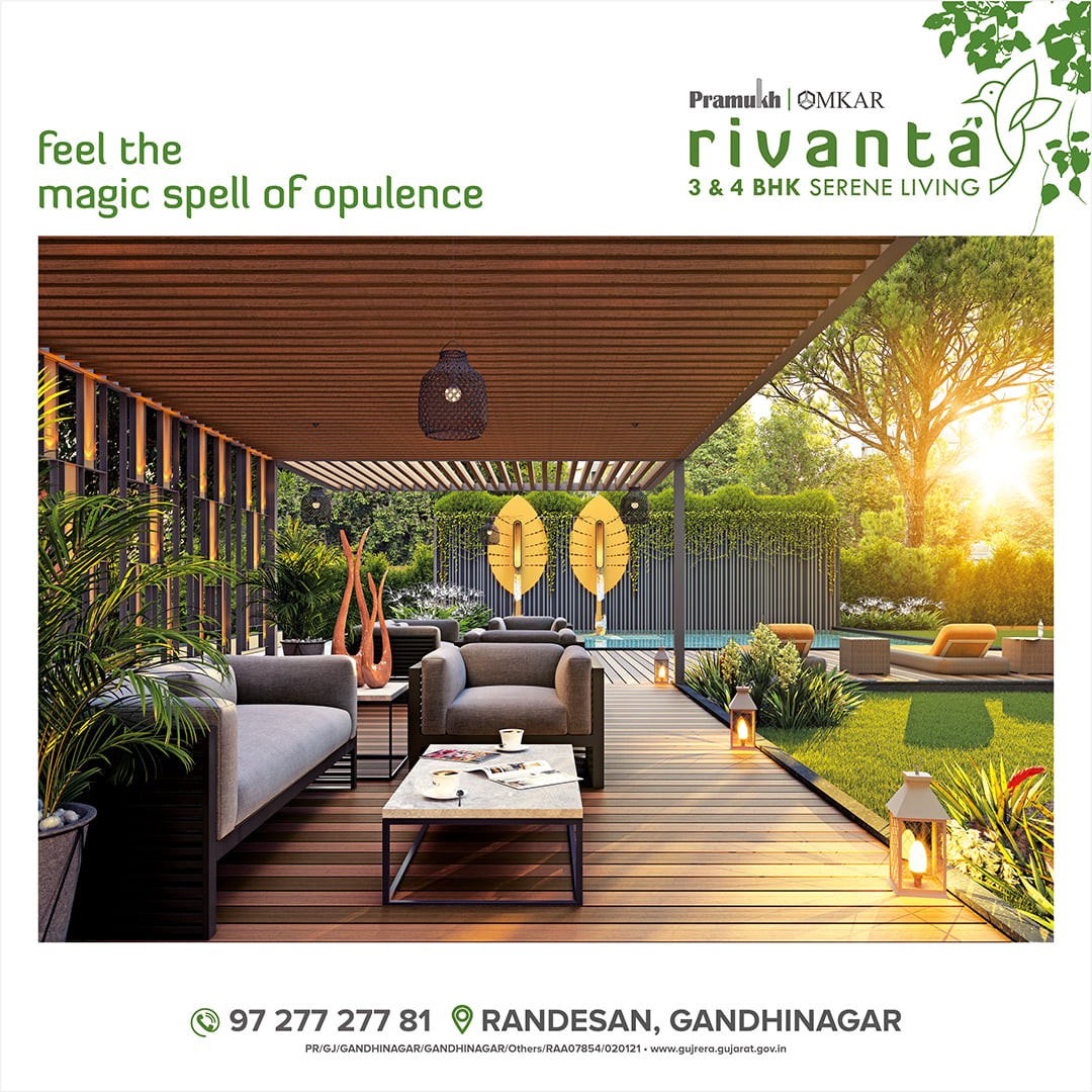 The best place to be RIVANTA 3 4 BHK SERENE LIVING By Pramukh Omkar Near Antriksh Dholeshwar Mahadev Road Randesan Gandhinagar BOOK NOW 97 277 277 81 info rivanta in
