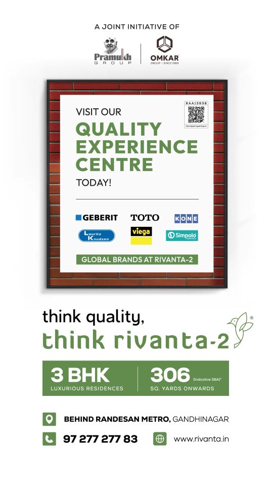 #rivantabypramukhomkar #gandhinagar #rivanta #rivanta2 #thinkquality #thinkqualitythinkrivanta2 #experience #experiencecenter #experiencecentre #qualityliving #quality #3bhkapartments #4bhkapartments