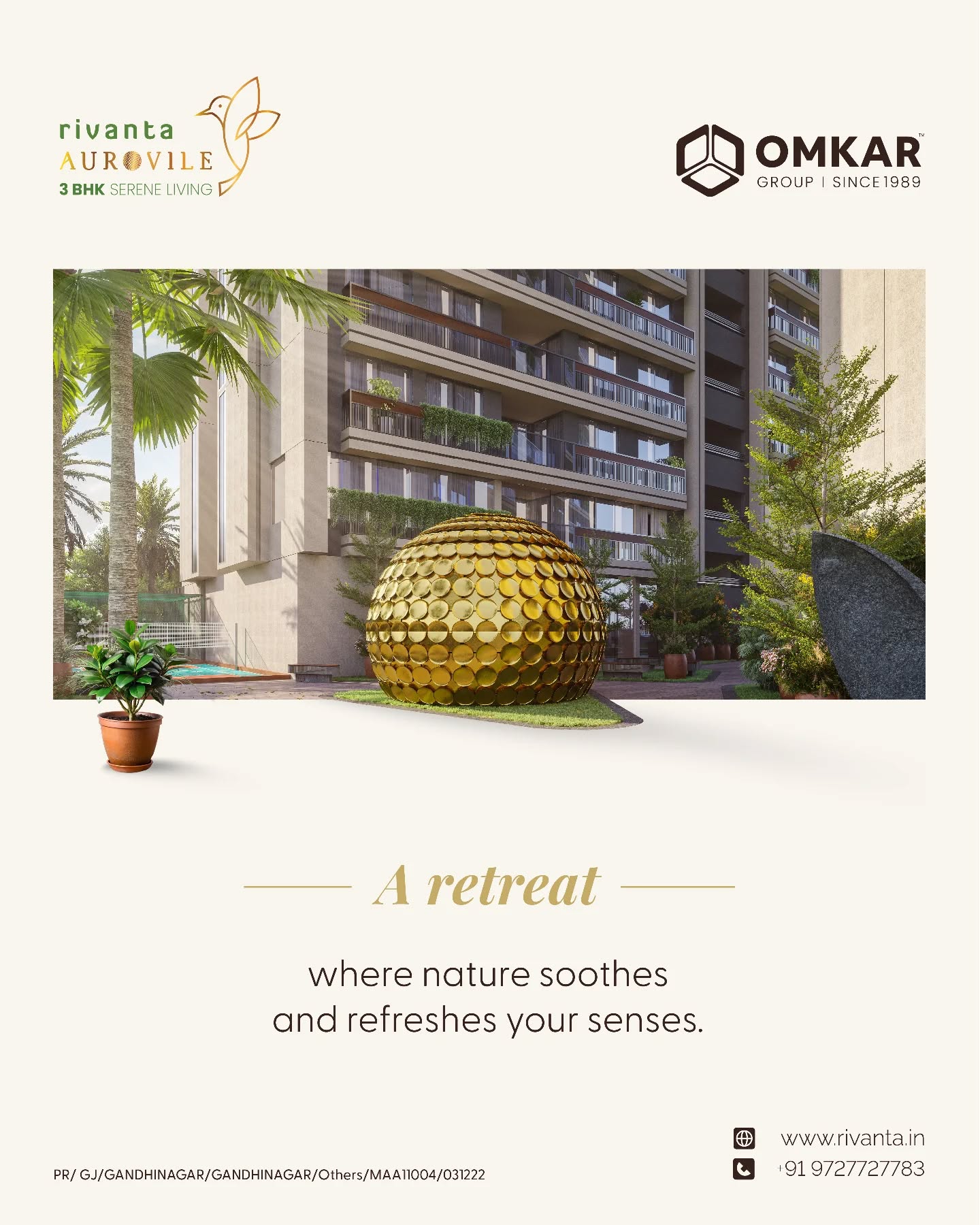 THE WAY OF LIFE RIVANTA Experience Peace Nature Luxury Like Never Before A visionary collaboration between Pramukh Omkar Rivanta redefines community living in Gujarat with six strong fundamentals for an enriched lifestyle Prime Location Near Randesan Metro Station Greater GIFT City Gandhinagar Seamless Connectivity Say goodbye to traffic embrace hassle free commuting Surrounded by Convenience Close to schools hospitals shopping workplaces World Class Amenities for a Balanced Life Gymnasium Yoga Meditation Hall Jogging Track Toddler Play Area Indoor Games Gazebo Lily Pond Home Theater Guest Rooms Multipurpose Hall 100 pax No Vehicle Zone Landscaped Lawn Meeting Room Rivanta A Celebration of Fine Living DM us or call Your Contact Number to book your dream home today Tagged_photo